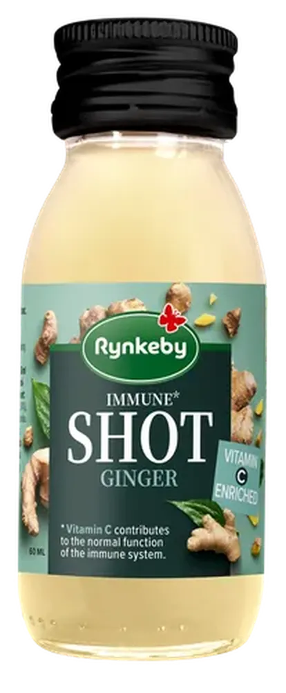 Rynkebys ingefärashot är framställd av pressad ingefära efter en metod som bevarar den goda skarpa smaken. Äpplet ger en mild avrundad eftersmak och citronjuicen gör smaken extra fyllig. Ingefärashoten innehåller 34% ingefära. Blir vår klassiker din nya vana?